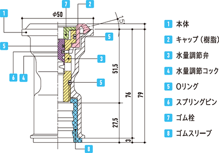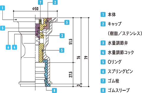 十字ハンドルで調整弁をゆるゆると散水キャップが持ち上がり、散水孔及びノズル内部の清掃ができます。