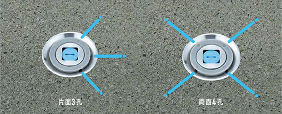 散水数 散水角度 散水孔径(φ)(mm) 接続口径(φ)(mm) 片面1孔 15° 2 22 片面2孔 2.5 片面3孔 3