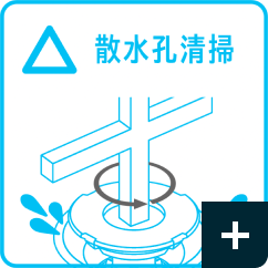 散水孔が詰まった場合は散水孔清掃工具を使用し孔詰まりの清掃を行ってください。
