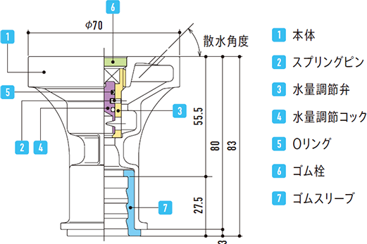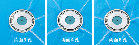散水数 散水角度 散水孔径(φ)(mm) 接続口径(φ)(mm) 片面3孔 30° 3 22 45° 両面4孔 30° 3 22 45°