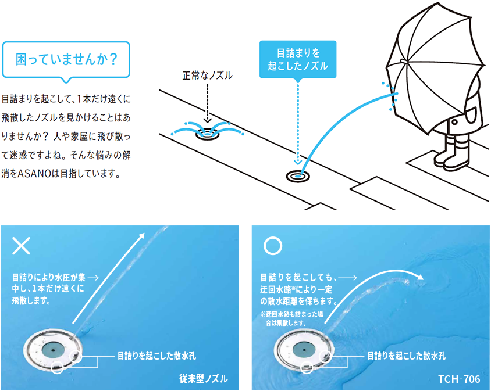 特にASANOのノズルは調整弁もオールステンレスですので、シーズン初めの調整不良や破損の恐れもなく、維持管理を含めたランニングコストの削減にも繋がります。-