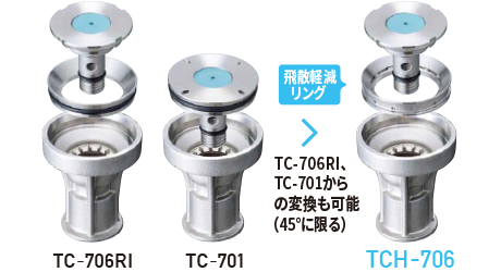 全周に迂回水路を設けた飛散軽減リングを内蔵した新しいタイプのノズルです。