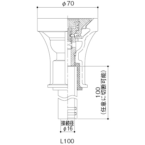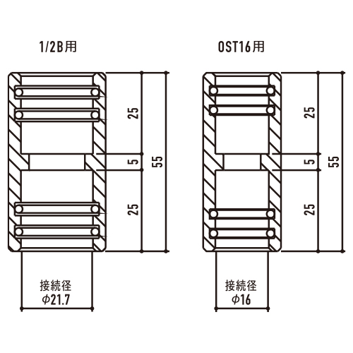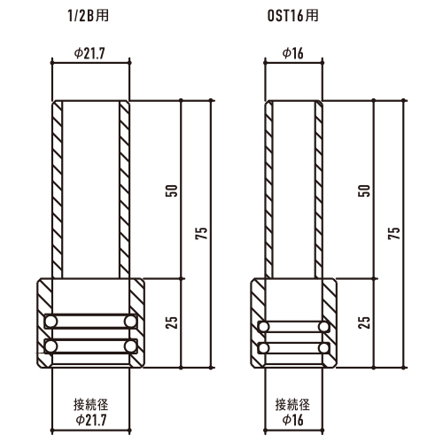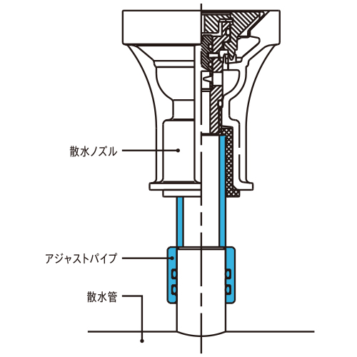 立管の嵩上げや1/2B径以外から1/2B径への変更に対応できます。
